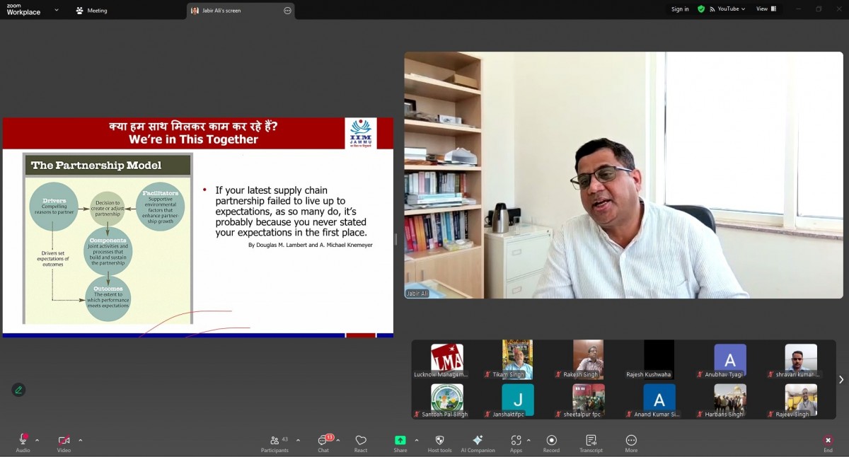 Lucknow Management Association organized an online workshop on “Effective Management of FPOs” on 03 September 2025. Speaker was Prof. Jabir Ali IIM Jammu. Ms. Renu Chaudhary, General Manager LMA welcomed & introduced the Speaker and proposed a formal vote of Thanks on the occasion. More than 45 FPOs from Lucknow, Kanpur, Prayagraj and Basti mandal were present in the online session.