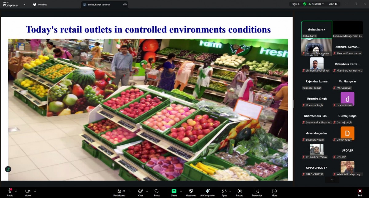 Lucknow Management Association organized an online workshop on “Government Scheme for FPOs” on 18 August 2025. Speaker was Dr. S.K. Chauhan Horticulture Department. Ms. Renu Chaudhary, General Manager LMA welcomed & introduced the Speaker and proposed a formal vote of Thanks on the occasion. More than 70 FPOs from Bareilly, Moradabad, Saharanpur and Meerut mandal were present in the online session.