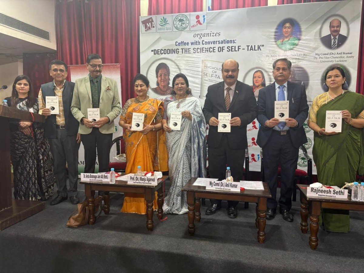 Lucknow Management Association in collaboration with HelpU Educational & Charitable Trust, Mind Spa and Aligarh Muslim University Old Boy’s Association organized Coffee with Conversations: Decoding the Science of Self-Talk and Release of Book “Psychology of Self-Talk” author Prof. Manju Agarwal Founder President Mind Spa, Professor, Emeritus and Author on 15 November, 2025. Eminent panelists were Dr. Anita Bhatnagar Jain IAS (Retd.) Author, Story Narrator, Environmentalist, Wg Comd (Dr.) Anil Kumar Dy. Pro Vice Chancellor, Amity University Lucknow, Mr. Chandra Shekhar Verma Storytelling, Trainer, Coach and Quiz master and Mr. Rajneesh Sethi Managing Director, Rako Agrochem Pvt. Ltd. Dr. Archana Shukla HoD, Department of Psychology University of Lucknow moderated the session.