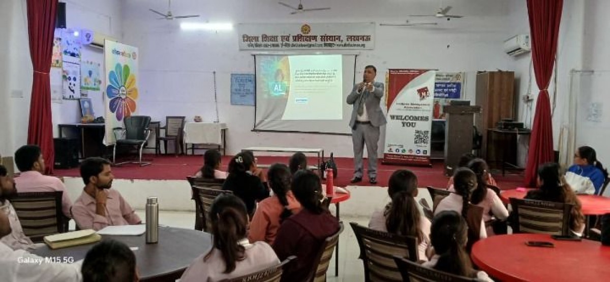 Lucknow Management Association organized a workshop on “Information and Technology” for D.El.Ed trainees and faculty at the District Institute of Education and Training (DIET), Lucknow, conducted by Dr. Dheeraj Mehrotra, Regional Head, Adani Gems Education, on 17th November 2025, where he introduced more than 27 AI tools.