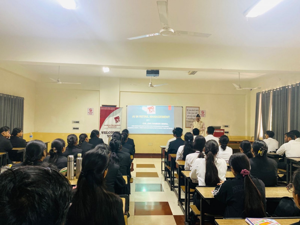 Lucknow Management Association in collaboration with T.S. Mishra University organized an Expert Talk on "AI-Powered Retail: Shaping the Future of Marketing" for MBA &BBA students of Department of Management, T.S. Mishra University on 13 October 2025. Session was conducted by Col (Dr) Sameer Misra. Faculties and students of T.S. Mishra University were present.