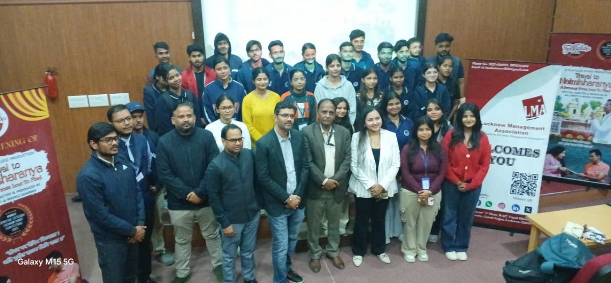 Lucknow Management Association in collaboration with FolkTales Incorporation organized screening of the captivating documentary "Travel to Naimisharanya:- A journey from lost to Find" written, directed and produced by Ms. Raj Smriti & Mr. Manuj Sharma on 05 December, 2025. This 30 minutes documentary highlighting mental health & How spirituality Heals with special focus on religious places in Naimisharanya