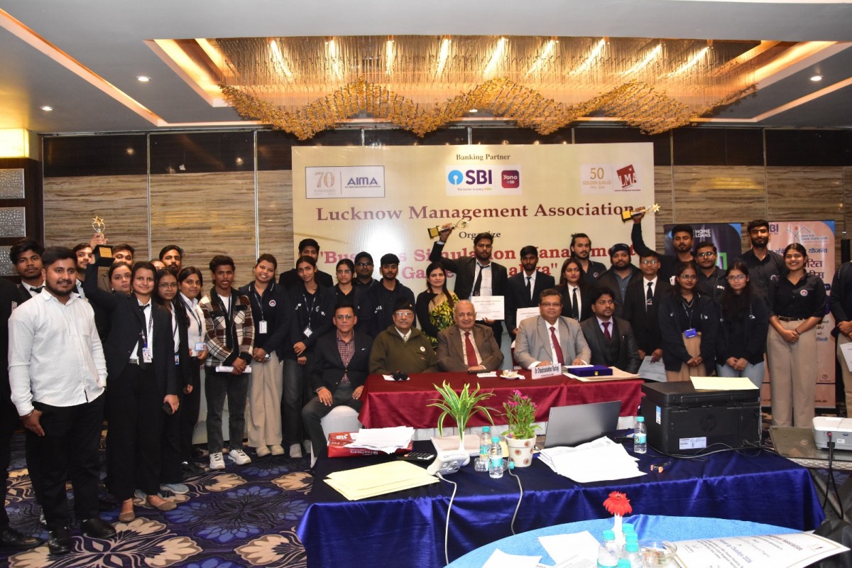 Chanakya, a two-day high-impact management game, organized by the All India Management Association and Lucknow Management Association on 30 and 31 January 2026. Teams from different institutions participated in this management game. Team GCRG Group of Institutions from B-School were the Winners. Team SRMCEM from B-School were the first runners up and Team Jhunjhunwala Business School was second runner up. Mr. A.K. Mathur Sr. Vice President LMA, Mr. Rahul Dutt Secretary LMA, Col. (Dr.) Sameer Misra Executive Director LMA awarded the trophy to the winning team, in which AIMA Administrator Dr Chandra Shekhar Rastogi played a key role. Ms. Renu Chaudhary, General Manager LMA coordinated the game.
