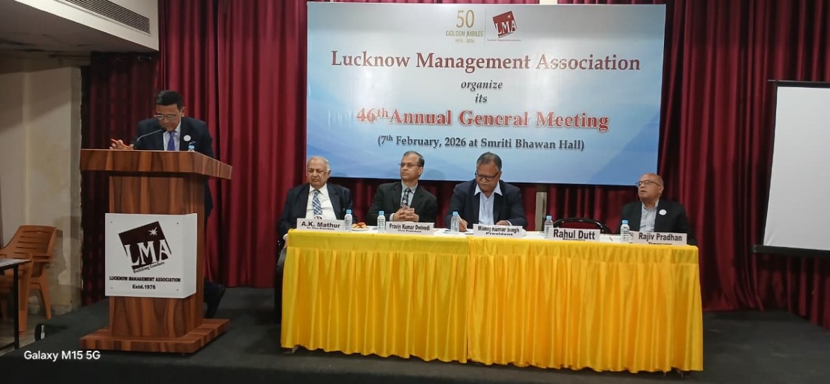 The 46th Annual General Management of Lucknow Management Association was held on 07 February 2026 at the LMA office, and over 150 LMA members attended. The purpose of the AGM is to vote for the position of Vice President, present the financial statements, and conduct other business issues as outlined in the agenda. Mr. Pravin Kumar Dwivedi was elected as the new Vice President. Mr. Narendra Bhooshan, Mr. A.K. Mathur, Mr. Rahul Dutt and Mr. Rajiv Pradhan elected unopposed as President, Sr. Vice President, Secretary and Treasure respectively.