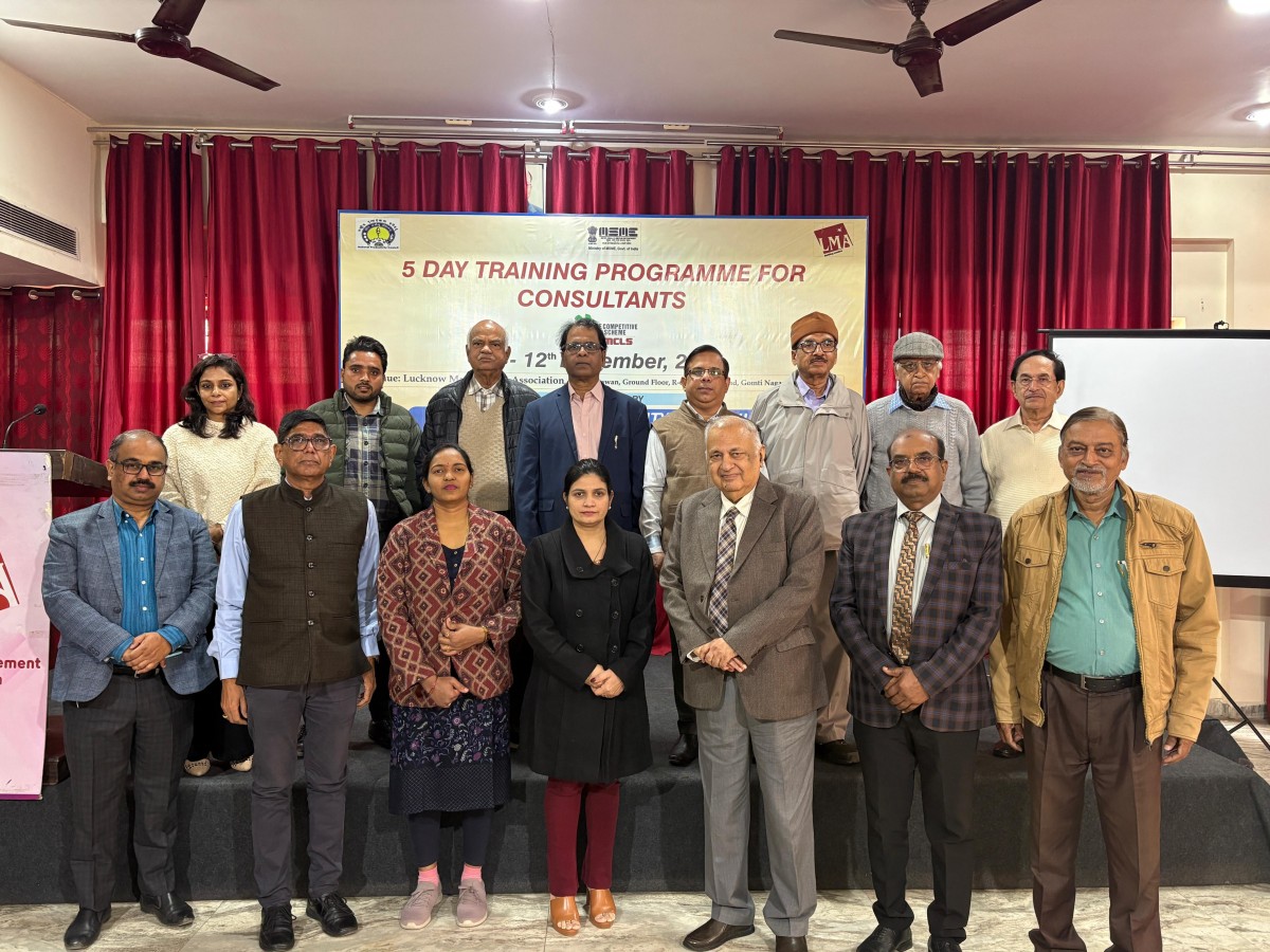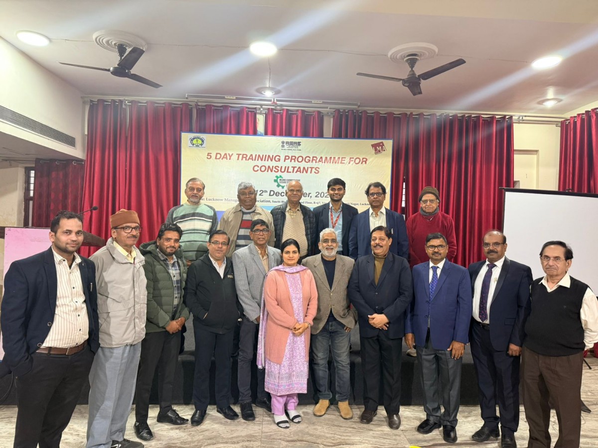 Lucknow Management Association (LMA), in collaboration with the National Productivity Council (NPC) and the Department of MSME, Government of India, successfully organized a five-day Consultant Training Programme under the MCLS/LEAN Scheme of the Ministry of MSME. On 10 Dec: Day 3 session was conducted by Mr. Pawan and Assistant Director Mr. Ayushman Shukla, who introduced Lean Six Sigma tools along with the basics of inventory control and Kaizen techniques.