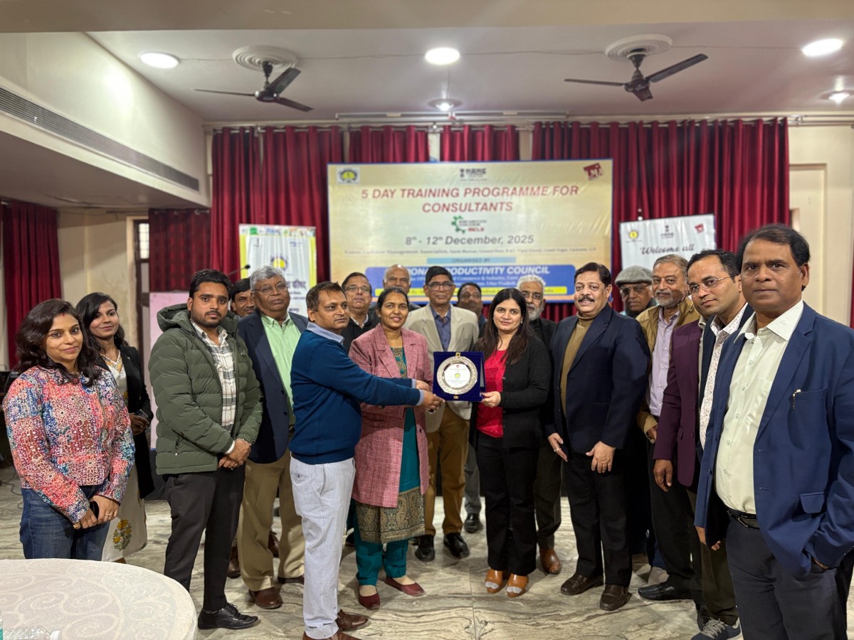 Lucknow Management Association (LMA), in collaboration with the National Productivity Council (NPC) and the Department of MSME, Government of India, successfully organized a five-day Consultant Training Programme under the MCLS/LEAN Scheme of the Ministry of MSME. On 09 Dec: Day 2, Mr. Vineet from NPC explained concepts such as Value Stream Mapping, work study, motion and time study, process capability, statistical tools, line balancing, and single-piece flow.