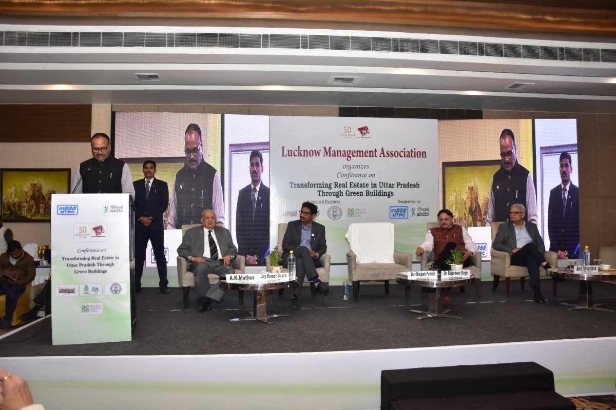 Lucknow Management Association in collaboration with the Indian Green Building Council (IGBC), Indian Institute of Architecture (IIA), CREDAI, and the Alliance for Energy Efficient Economy (AEEE) organized a Conference on “Transforming Real Estate in Uttar Pradesh through Green Buildings” on 24 January, 2026. Eminent speakers were Mr. Amit Srivastava Chairman IGBC-Lucknow chapter, Mr. Jay Kumar Gupta General Manager SIDBI, Ar. Ashok Kumar Founder & Principal Arch En Design and Mr. Raj K. Verma Deputy Manager Alliance for Energy Efficient Economy (AEEE). Shri Brajesh Pathak, Hon’ble Deputy Chief Minister, Government of Uttar Pradesh was the Chief Guest, and Dr. Rajeshwar Singh, Hon’ble Member of Legislative Assembly, Sarojini Nagar, Lucknow, was the Guest of Honour.