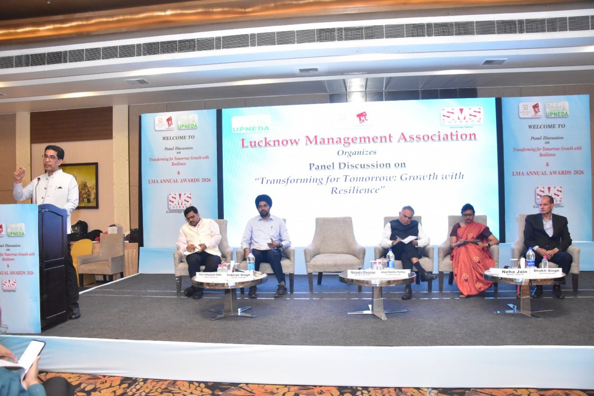 Lucknow Management Association on 25th March 2026 in collaboration with UPNEDA, organised a panel discussion on the theme “Transforming for Tomorrow: Growth with Resilience”. Eminent panellists were Mr. Inderjit Singh, Director, UPNEDA on Technology for Tomorrow: Advancing Solar and Renewable Resilience, Prof. Sabyasachi Sinha, IIM Lucknow on Reimagining Management Education for a Resilient and Sustainable Future, Ms. Neha Jain, Special Secretary, IT & Electronics, GoUP on Technology Imperative: How India Can Win in the AI Age and Mr. Shakti Singh, Plant Head, Ashok Leyland, Lucknow on Electric Mobility Revolution: Transforming Transportation with Innovation and Resilience. Key note address by was Mr. Narendra Bhooshan Additional Chief Secretary GoUP and President LMA and discussion moderated by Dr. Anup Chand Pandey former chief secretary GoUP