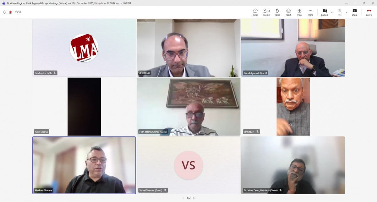 AIMA and Northern Region LMAs Coordination Meeting on 14 May 2025. Mr. A.K. Mathur Sr. Vice President LMA coordinated the meeting. LMAs that were part of this group were Allahabad, Bathinda, Chandigarh, Dehradun, Delhi, Faridabad, Ghaziabad, Gurgaon, Hardwar, Lucknow, Ludhiana, Meerut, Noida, Rohilkhand, Yamuna Nagar Jagadhri Management Association.