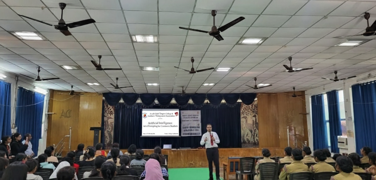 On February 12, 2026, the Lucknow Management Association (LMA) in collaboration with Avadh Girls Degree College, conducted an engaging session on "The Art of Promoting for Commerce Students" that attracted approximately 100 students. CA Devesh, a Chartered Accountant and Coordinator of LMAs Young Members Forum (YMF), led the comprehensive session covering crucial topics, including the use of AI-powered tools like Perplexity, practical guidance on website development, productivity enhancement techniques, and insights into the changing career landscape in the age of artificial intelligence.